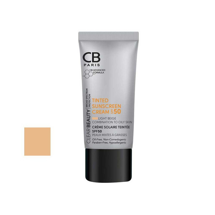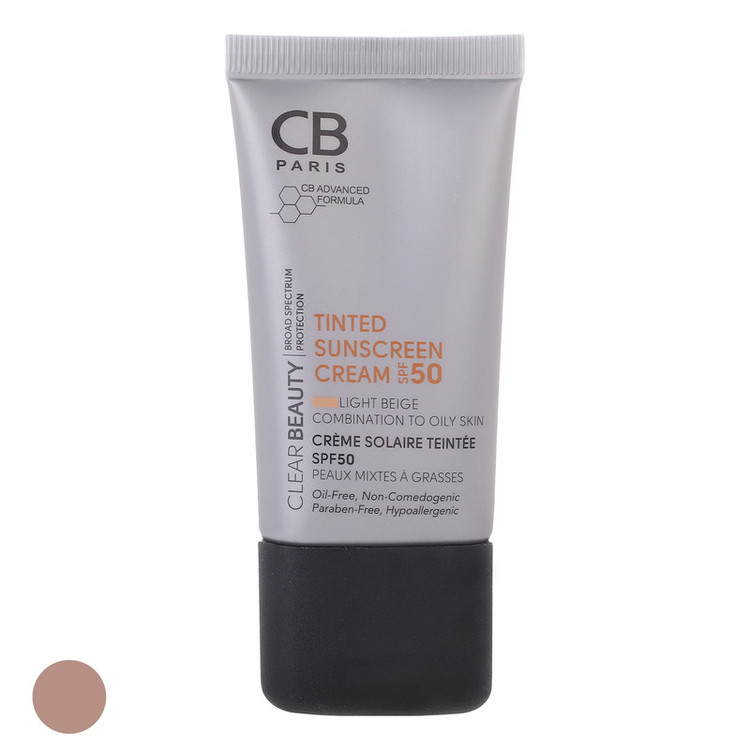 کرم ضد آفتاب رنگی سی بی پاریس SPF 50 بژ روشن مناسب پوست های مختلط و چرب حجم 40 میلیلیتر