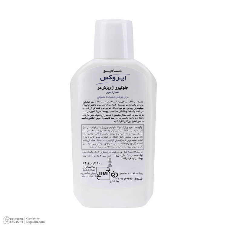 شامپو سیر ایروکس با فرمولاسیونی غنی و تخصصی و بر پایه عصاره ارزشمند سیر تهیه شده است. شامپو سیر ایروکس موجب افزایش گردش محیطی خون در کف سر شده و موجب تحریک پوست و رشد مجدد موها میگردد. شامپو سیر ایروکس باعث تقویت موهای آسیب دیده میشود و از ریزش موهای ضعیف و شکننده جلوگیری به عمل میآورد همچنین شامپو سیر ایروکس نقش بسیار مؤثری در رفع و درمان شوره سر دارد. سیر حاوی مقادیر زیادی گوگرد است که باعث استحکام موها میشود. گوگرد یک ماده ضروری در ساخت کراتین است. کراتین در رشد موها و ناخنها نقش دارد. سیر خاصیت ضد قارچی و ضد میکروبی دارد و از ایجاد شوره سر جلوگیری میکند و باعث حفظ سلامت موها میشود. سیر حاوی سلنیوم است که ویتامین E لازم برای سلامت و تقویت موها را تأمین کرده و از آسیب احتمالی موها و شکنندگی آنها جلوگیری میکند. سیر باعث تأمین ویتامینهای ضروری در تقویت مو، مثل ویتامین C، ویتامین B2 و ویتامین B1 میشود؛ همچنین به دلیل تأمین این ویتامینها باعث تقویت جریان خون در کف سر شده و از ریزش مو و طاسی جلوگیری میکند. سیر، حاوی مقادیر فراوانی مس و آهن و مواد معدنی است، به همین دلیل باعث تسریع رشد موها میشود. سیر، عناصر اصلی تشکیل دهنده مو، مثل کلسیم لازم را تأمین کرده و باعث تقویت و استحکام موها میشود. سیر به دلیل دارا بودن مواد ضروری مثل منگنز، برای سلامت تارهای مو بسیار مفید بوده و موها را مثل ابریشم نرم میکند. منگنز مانند یک اسفنج است که باعث جذب مواد مغذی برای رشد موها میشود. شامپوی سیر ایروکس میتواند به شکل موثری ریزش مو را کنترل کند همچنین شامپو سیر ایروکس میتواند عفونتهای پوست سر را درمان کرده و به شکل موثری مو را تقویت کند. شامپو سیر ایروکس بسیاری از مشکلات مو مانند شوره و خشکی مو را درمان می کند.
