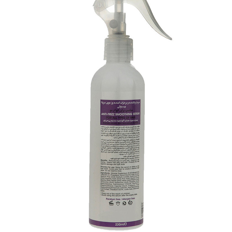 سرم مو سریتا مدل ضد وز مدل نرم کننده حجم 230 میلی لیتر با رطوبت رسانی به مو سبب افزایش نرمی و برطرف شدن وز موها میشود. این محصول سرشار از عصارههای گیاهی بوده و پس از استفاده نیز نیازی به آبکشی ندارد.