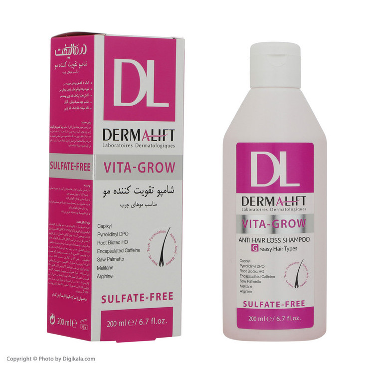 شامپو ضد ریزش و تقویت موهای چرب درمالیفت مدل Vita-Grow حجم 200 میلیلیتر