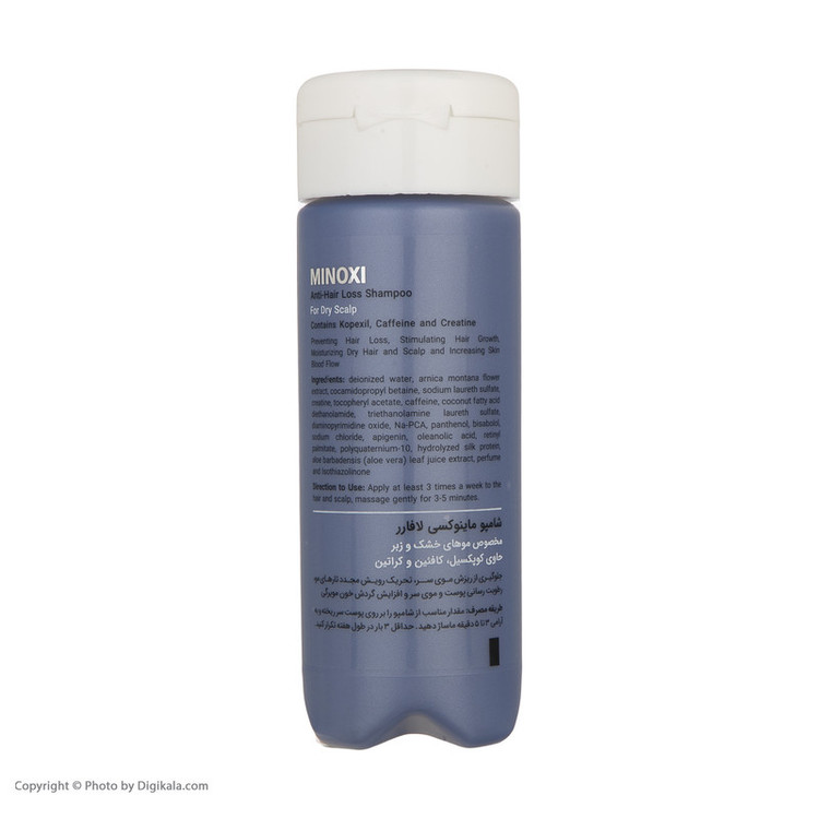 شامپو ضد ریزش ماینوکسی لافارر مخصوص موهای خشک و زبر حاوی ماینوکسیدیل، کافئین، کراتین، پروتئین های هیدرولیز شده ابریشم، عصاره آلوئهورا، Na-PCA و ویتامین B5 میباشد که موجب اثر هم افزایی ماینوکسیدیل و کافئین در پیشگیری از ریزش مو، قدرت جذب سریع و تام مواد به دلیل وجود کافئین، تحریک رویش مجدد تارهای مو، ممانعت از تولید DHT و جلوگیری از ریزش موی ارثی یا آندروژنیک میگردد، عصاره های گیاهی به کار رفته در شامپو باعث رطوبت رسانی عمقی به تارهای مو، جلوگیری از موخوره و همچنین ایجاد حالت ابریشمی در مو میشوند.