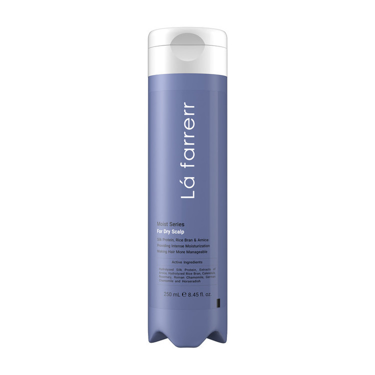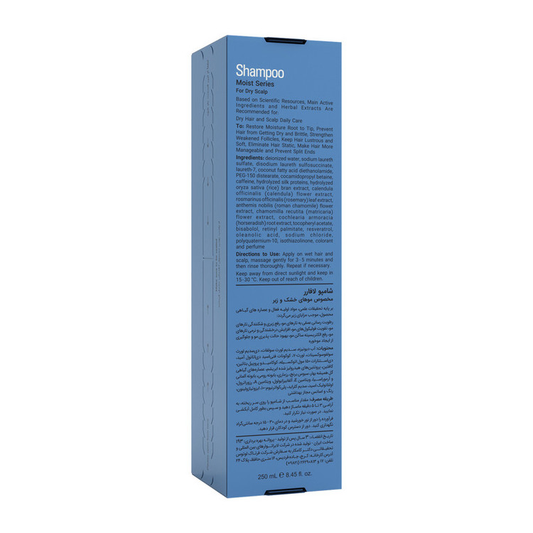 شامپو رطوبترسان و تقویتکننده لافارر، سازگار با موهای خشک، حاوی پروتئین ابریشم، سبوس برنج و آرنیکا، با حجم 250 میلیلیتر مدل Moist Series