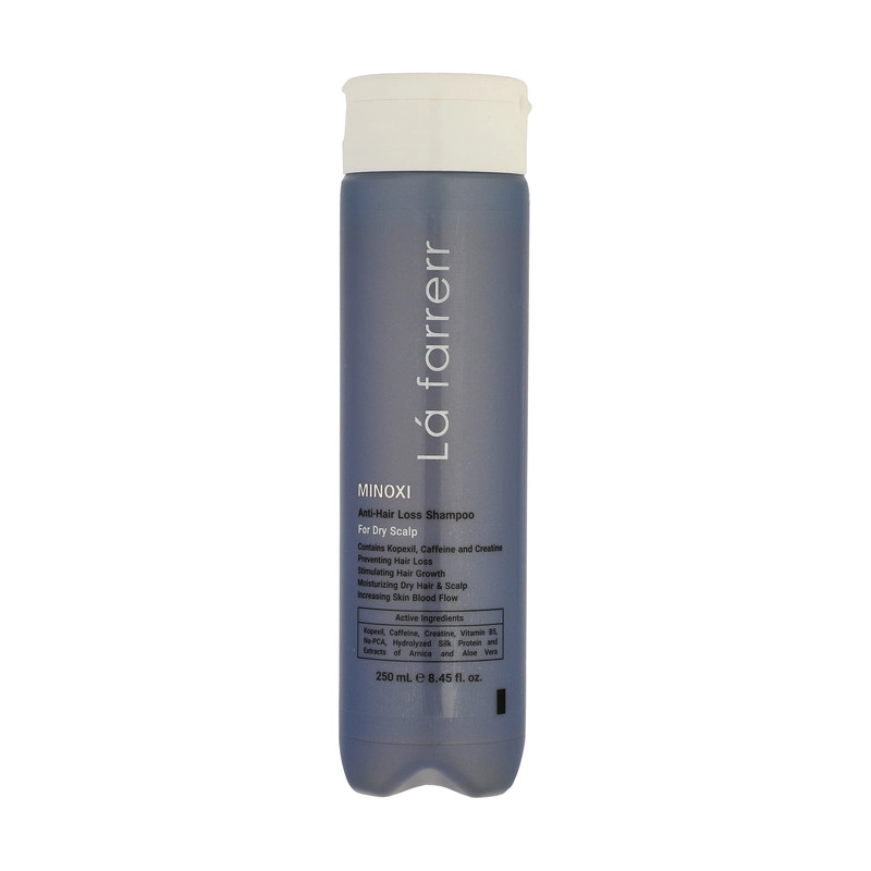 شامپو ضد ریزش ماینوکسی لافارر مخصوص موهای خشک و زبر حاوی ماینوکسیدیل، کافئین، کراتین، پروتئین های هیدرولیز شده ابریشم، عصاره آلوئهورا، Na-PCA و ویتامین B5 میباشد که موجب اثر هم افزایی ماینوکسیدیل و کافئین در پیشگیری از ریزش مو، قدرت جذب سریع و تام مواد به دلیل وجود کافئین، تحریک رویش مجدد تارهای مو، ممانعت از تولید DHT و جلوگیری از ریزش موی ارثی یا آندروژنیک میگردد، عصاره های گیاهی به کار رفته در شامپو باعث رطوبت رسانی عمقی به تارهای مو، جلوگیری از موخوره و همچنین ایجاد حالت ابریشمی در مو میشوند.