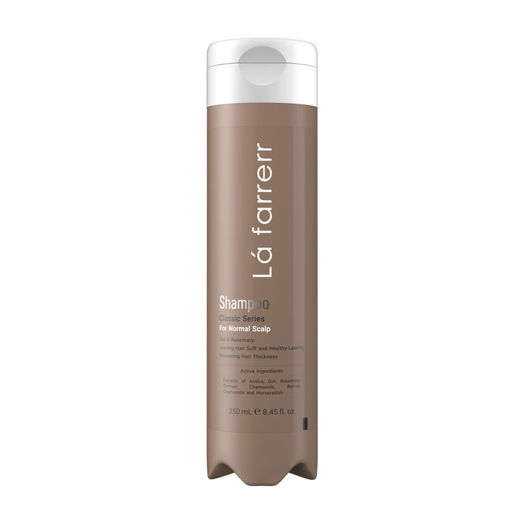 شامپو نرم کننده، تقویت کننده و ضخیم کننده مو لافارر، سازگار با موهای معمولی، حاوی عصاره گیاهان آرنیکا، جو دوسر، رزماری و بابونه، با حجم 250 میلیلیتر مدل Classic Therapy