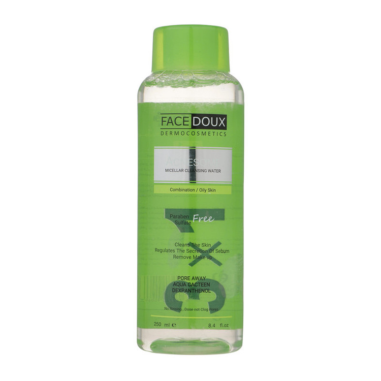 محلول پاک كننده صورت مخصوص پوست های چرب و آكنه ای آکنه زوم فیس دوکس این محلول پاک کننده آرایش یا میکاپ ریموور مناسب پوست چرب و مختلط و پوست های آکنه ای است. میسلار واتر آکنه زوم فیس دوکس نیاز به آبکشی ندارد و در موقعیت های حساس که دسترسی به آب وجود ندارد و یا اینکه فرد بیمار بستری شده است بهترین گزینه برای پاک کردن پوست است. این میسلار واتر دارای PH فیزیولوژیک نزدیک به پوست و بدون نیاز به آبکشی است. این میسلار واتر آکنه زوم را میتوانید برای پوست های مختلط و چرب و حتی دهیدراته استفاده نمایید. اگر چنانچه مبتلا به درماتیت سبورئیک هستید و به شدت نسبت به شستشوی صورت با شوینده حساس هستید میتوانید از این میسلار واتر استفاده کنید. مواد موثره در فرمولاسیون میسلار واتر آکنه زوم قابلیت کمک به کنترل چربی و کاهش سایز منافذ باز روی پوست را دارد. این میسلار به خوبی می تواند به شما در کاهش ضایعات روی پوست که ناشی از آکنه و افزایش سن است کمک کند. میسلار آکنه زوم می تواند به صورت عمیقی پاکسازی را انجام دهد که شما بتوانید مجددا با پوست رفرش و تمیزی مواجه شده و سپس اقدام به بکارگیری محصولات ضد اکنه و یا ضد پیری و یا مرطوب کننده نمایید. رکیبات این میسلار واتر بسیار آبرسان و ملایم بوده و به تسکین پوست های آکنه ای و ملتهب کمک میکند. از این میسلار می توانید به عنوان آفتر شیو در بانوان و آقایان استفاده کنید. ترکیبات خاصی که در این میسلار واتر وجود دارد اثرات همانند پری بیوتیک ها بر روی پوست دارند که می تواند بسیار به تقویت سد دفاعی پوست و میکروبیوم آن کمک کنند.
