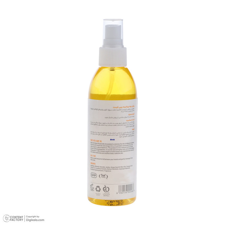شرکت لابراتوار دکتر اخوی با استفاده از ترکیبات گیاهی نظیر روغن های آفتابگردان، بادام، آووکادو، جوجوبا هسته انگور و زیتون محصول مراقبتی نوین و اثربخشی جهت حفظ سلامت پوست حساس کودکان تحت عنوان روغن بچه ویتامینه بیبی فرست طراحی کرده است. این محصول از بافت سبکی برخوردار بوده و به سرعت جذب پوست کودک می گردد. علاوه بر این، روغن مولتی ویتامینه بیبی فرست سی گل با ترکیبات امگا 6 و 9 یا ویتامین F فرآوری شده و در افزایش نرمی و انعطاف پذیری پوست کودک نقش اثرگذاری دارد؛ این خصوصیت سبب پیشگیری از خشکی پوست حساس کودکان شده و احساس آرامش و راحتی را به پوست آنها هدیه می دهد. با توجه به تمام ویژگی های گفته شده، روغن ویتامینه بیبی فرست، به عنوان یک گزینه ایده آل برای ماساژ پوست بدن کودکان و بزرگسالان شناخته شده و با داشتن خاصیت رطوبت رسانی، به تقویت پوست افراد مختلف کمک می کند.