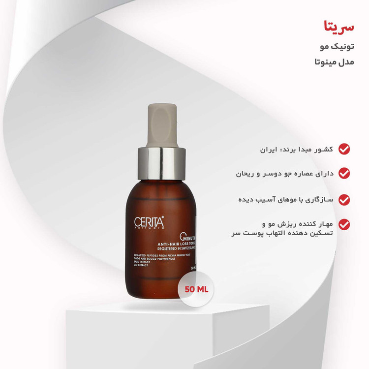 تونیک مو سریتا مدل مینوتا حجم 50 میلی لیتر از برند سریتا، یک تونیک مو با ویژگیها و خواص فراوان است. این تونیک مو، با حجم 50 میلی لیتر، به شما کمک میکند تا مشکل ریزش مو را حل کنید و موهایتان را تقویت کنید. این تونیک مو با نام مینوتا سریتا همچنین دارای نظرات بسیار مثبت کاربران است که نشان میدهد کیفیت بالای آن را تایید میکنند. تونیک مو سریتا مدل مینوتا حاوی محلولی است که طراحیشدهاست تا به شما در کاهش ریزش مویتان کمک کند. این محلول سریتا با استفاده از ترکیبات خاصی مانند پرومین سریتا، برای جلوگیری از ریزش مو و تقویت ریشههای مویتان طراحیشدهاست. همچنین، این تونیک مو دارای خاصیت ضد ریزش مو است که به شما کمک میکند موهایتان را از ریزش نجات دهید. با استفاده از تونیک مو سریتا مدل مینوتا حجم 50 میلی لیتر، میتوانید مشکل ریزش مو را بهبود ببخشید و به موهایتان جلوهای زیبا و سالم ببخشید. این تونیک مو دارای ترکیبات طبیعی است که به موها انرژی و قدرت میبخشد و به ریشههای مویتان تقویت میکند. بنابراین، اگر به دنبال یک راه حل برای مشکل ریزش مو هستید، تونیک مو سریتا مدل مینوتا حجم 50 میلی لیتر را امتحان کنید.