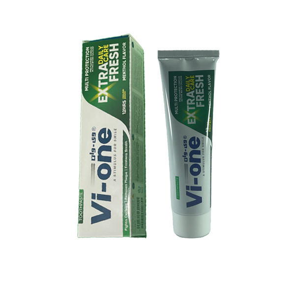 خمیردندان «EXTRA FRESH» از برند «وی وان» (V-One) یک شویندهی آنتیباکتریال قوی برای دندانهاست. این خمیردندان با خاصیت ضدپلاک، هم پلاکهای میان دندانها را از بین میبرد و هم از ایجاد پلاکهای جدید جلوگیری میکند. این خمیردندان علاوهبر این خاصیت، دندانها را سفید و درخشان میکند. ترکیبات خمیردندان ویوان از پوسیدگی دندانها نیز جلوگیری میکند. این محصول رسوب دندان را از بین برده و از مینای دندان محافظت میکند. خمیردندان اکسترا فرش وی وان دارای عصاره برگ نعنا باعث خوشبوشدن دهان و تازهشدن نفس میشود. این محصول انتخابی مناسب برای استفاده و مراقبت روزانه از دندانهاست. حجم 130 میلیلیتری و کیفیت خوب این محصول، خرید آن را بهصرفه کرده است. شستوشوی منظم دندانها، انتخاب خمیردندان و البته مسواک مناسب، مراقبت از دندانها را آسان میسازد؛ همچنین با این کار بهسادگی میتوان عمر دندانها را افزایش داد و سلامت لثه را حفظ کرد.