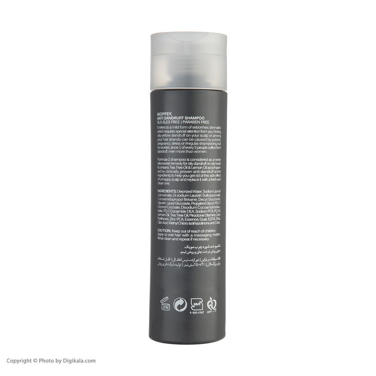 شامپو ضد شوره چرب موپک حاوی روغن درخت چای و روغن لیمو و فاقد ترکیبات سولفات،پارابن و سیلیکون.با کاهش میزان ترشح سبوم در اسکالپ، از ایجاد شوره چرب جلوگیری کرده وسطح پوست سر را با کمترین تحریک پذیری به خوبی پاک می نماید.