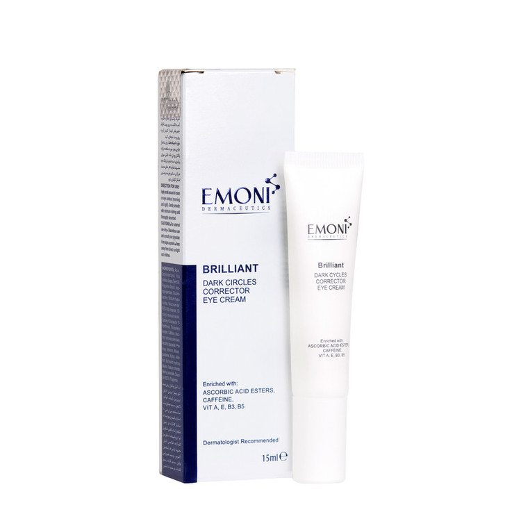 DARK CIRCLES CORRECTOR EYE CREAM Brilliant کرم مناسب تیرگی و پف دور چشم این محصول به کاهش پف و تیرگی دور چشم کمک می کند و باعث می شود پوست دور چشم جوانتر و شفاف تر به نظر برسد. استرهای ویتامین C موجود در این کرم باعث تحریک تولید کلاژن، افزایش الاستیسیته و کاهش تیرگی دور چشم می گردد. ترکیبات تشکیل دهنده این کرم عبارت اند از : • استر های ویتامین C (روشن کننده و ضد تیرگی) • کافئین (افزایش گردش خون موضعی و ضد پف) نیاسینامید (روشن کننده و ضد تیرگی) توکوفرول (آنتی اکسیدان) ویتامین B3, B5 (آنتی اکسیدان) ویتامین K (ضد التهاب) این فرمول مناسب همه انواع پوست می باشد.