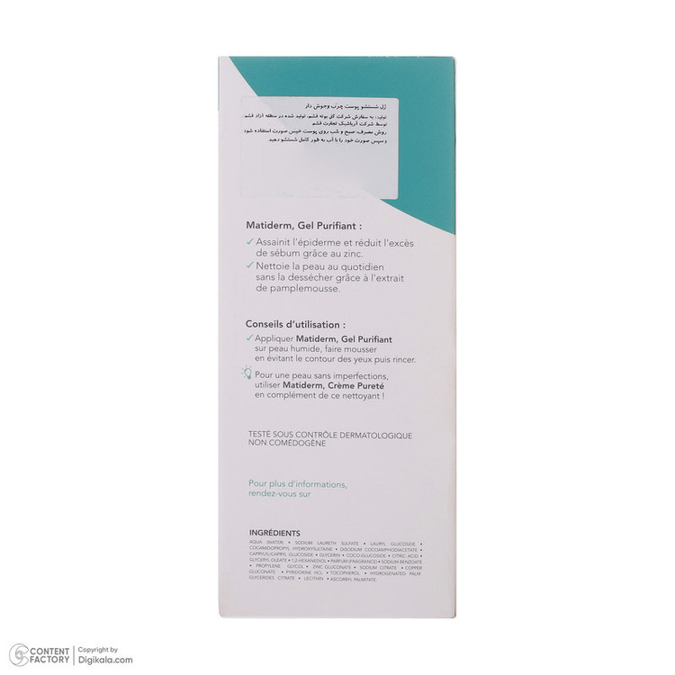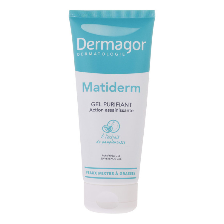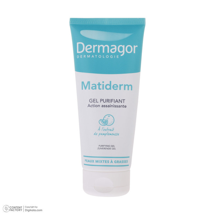 ژل شوینده پوست چرب Matiderm درماگور انتخابی بسیار مناسب جهت شست و شوی پوست چرب و مستعد جوش می باشد. این شوینده حاوی زینک (روی) و عصاره گریپ فروت می باشد. زینک ترکیبی ایده آل در این محصول است که پوست را از عمق پاکسازی می کند؛ این عنصر همچنین ترشح چربی یا همان سبوم پوست را تنظیم می کند و جوش های صورت را کاهش می دهد. عصاره گریپ فروت موجود در این محصول، پوست را از خشک شدن و کم آبی در اثر شست و شو در امان نگه می دارد و رطوبت پوست را جبران می کند. ژل شوینده پوست چرب Matiderm درماگور ضد آکنه است و مانع از ایجاد عفونت های قارچی می شود. قابل استفاده برای مصرف روزانه است. ژل شوینده پوست چرب Matiderm درماگور جلوی فعالیت های میکروبی مضر روی پوست را می گیرد. از بسته شدن سر منافذ جلوگیری می کند؛ زیرا با بسته شدن سر منفذ، فعالیت باکتری در داخل منفذ زیاد شده و باعث ایجاد التهاب و در نهایت جوش می شود. این شوینده از براقی پوست می کاهد و مات کننده پوست است. آنتی اکسیدان است و پس از استفاده پوست را شفاف تر از قبل می کند. کمدون زا نیست و تست درماتولوژی شده است.