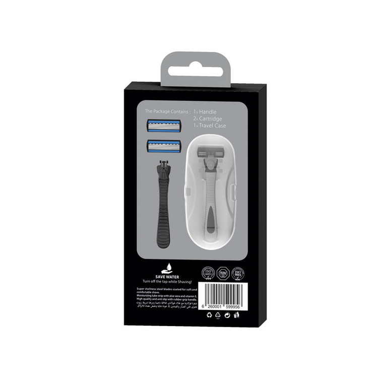 شش لبه سری متحرک جنس تیغه استیل ضد زنگ با روکش سرامیکی دسته رابر ضد لغزش دارای قاب مسافرتی پلاستیکی + 1 سری اضافه