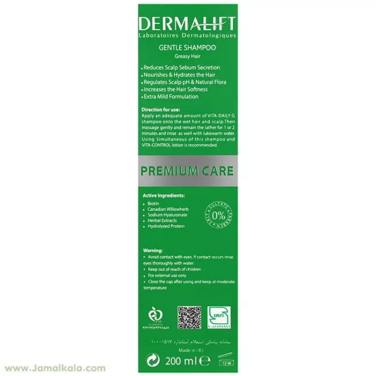 شامپو ملایم روزانه مناسب موهای چرب ویتا دیلی درمالیفت حجم 200 میلی لیتر
