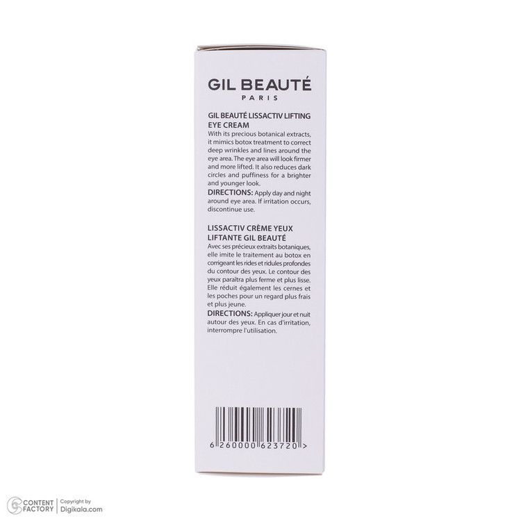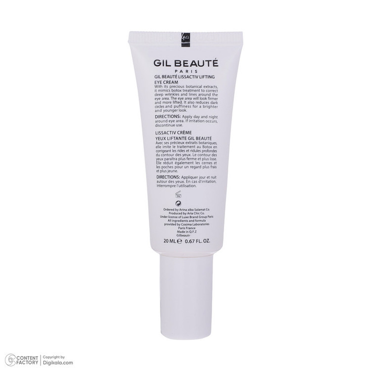 کرم ضد چروک و لیفتینگ دور چشم لیس اکتیو GIL BEAUTE محصولی مناسب برای درمان چروکهای اطراف چشم، لیفتینگ پلک بالای چشم و همچنین برطرف نمودن سیاهی و پف ناحیه دور چشم است. کرم ضد چروک و لیفتینگ دور چشم لیس اکتیو ژیل بوته باعث جلوگیری از پیدایش چین و چروک در پوست اطراف چشم، تحریک و ساخت کلاژن و افزایش الاستین در پوست و در نتیجه بازسازی پوست میشود. دورچشم ضدچروک ژیل بوته پلک بالای چشم را لیفت میکند، سیاهی و پف ناحیه دور چشم را برطرف میکند و خاصیت ارتجاعی و استحکام پوست را تقویت مینماید. همچنین قابل ذکر است که کرم ضدچروک و لیفتینگ دور چشم ژیل بوته دارای ویژگی هایپوآلرژنیک است و مناسب انواع پوست است.