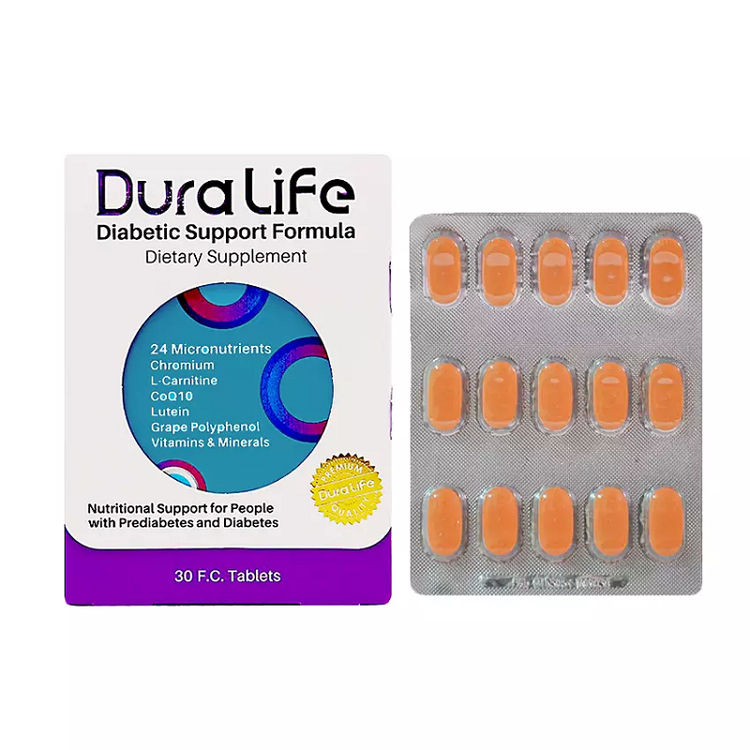 قرص روکشدار دورالایف دیابت فاران شیمی به صورت اختصاصی بر اساس محدودیتها و نیازهای افراد مبتلا به دیابت و همچنین کسانی که در معرض ابتلا به انواع دیابت قرار دارند، طراحی شده است. این فراورده حاوی ویتامینها، املاح ضروری و ریز مغذیهایی است که به حفظ سلامت عمومی بدن و تامین مواد مغذی مورد نیاز در افراد سالم و دیابتی، تنظیم میزان قند خون، تقویت و بهبود عملکرد سیستم ایمنی، عصبی، بینایی و تقویت عملکرد سیستم قلبی-عروقی کمک میکنند. از دیگر مزایای این محصول فاقد گلوتن بودن آن است که در بیماران مبتلا به سلیاک نیز فراورده را قابل استفاده کرده است. البته به این نکته توجه داشته باشید که مصرف قرص دیابت دورالایف در افراد سالم نیز منعی ندارد.