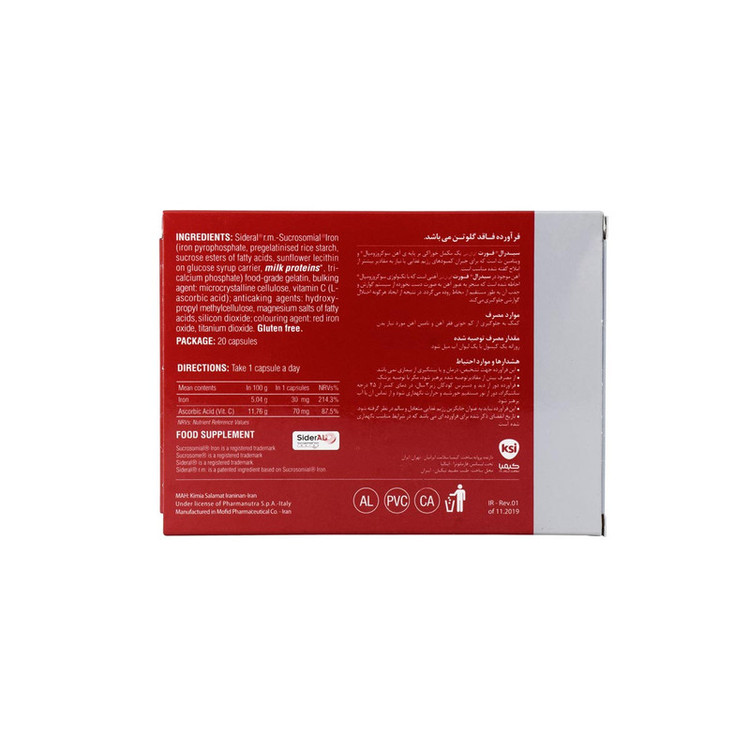 شرکت فارمانوترا ایتالیا برای اولین بار در دنیا اقدام به ارائه محصول نوآورانه خود به نام “سیدرال” به بازار کرده است. آهن موجود در محصولات سیدرال دارای قابلیت جذب بسیار بالا و کمترین عارضه گوارشی می باشد.