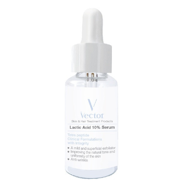 ویژگی های سرم لایه بردار لاکتیک اسید 10% وکتور عبارت از لایه برداری ملایم و بازسازی کننده پوست ونرم کننده و روشن کننده پوست بهبود ناهمواری ها و لک های پوست است.همچنین برطرف کننده لایه های مرده پوست می باشد.آبرسانی پوست و جلوگیری از خشک و حساس شدن آن و کاهش علائم پیری و خطوط ظریف پوست از دیگر ویژگیهای این سرم است. فاقد تست حیوانی و ساخت ایران با فرمولاسون آلمان است.