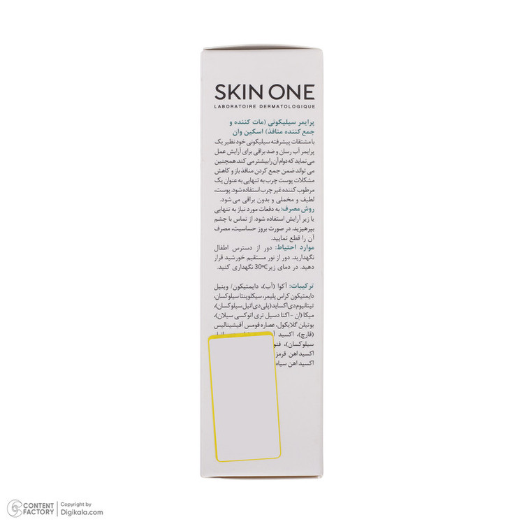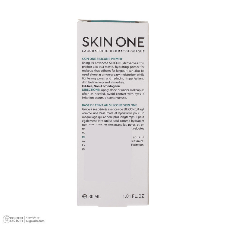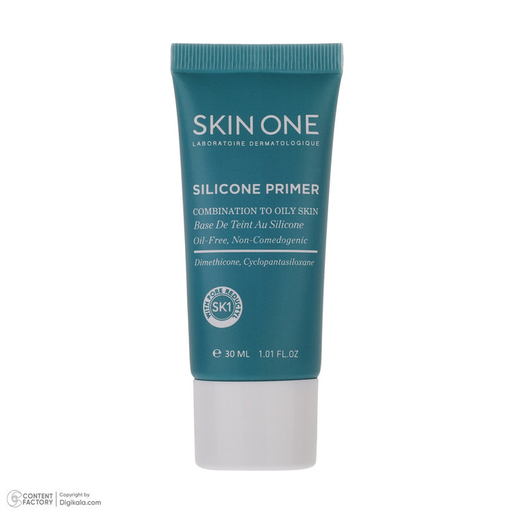 پرایمر سیلیکونی پوست مختلط تا چرب اسکین وان حجم 30 میلی لیتر محصولی جهت یکدست کردن پوست و آماده سازی صورت جهت آرایش است که برای پوستهای مختلط تا چرب توسط برند ایرانی اسکین وان به تولید رسیده است. این پرایمر ضد براقی، مات کننده و جمع کننده منافذ باز پوست میباشد. این پرایمر ماندگاری آرایش را افزایش میدهد و از ایجاد جوش پیشگیری میکند. حس لطافت و ابریشمی بودن را پس از استفاده کاملا حس خواهید کرد. پوست به دلیل فعالیت بیش از حد غدد چربی میتواند چرب شود و از مشکلات شایع آن میتوان به براقی، منافذ باز، آکنه، جوشهای سر سیاه و جای جوش اشاره کرد. جهت انجام آرایش بی نقص برای پوستهای چرب ابتدا بایستی صورت را به صورت کامل شستشو دهید و با استفاده از پرایمر اسکین وان پوست را یکدست و آن را جهت انجام آرایش آماده سازی نمایید. جهت استفاده از پرایمر سیلیکونی اسکین وان توصیه میشود به دفعات مورد نیاز به تنهایی یا زیر آرایش استفاده شود. از تماس با چشم بپرهیزید.