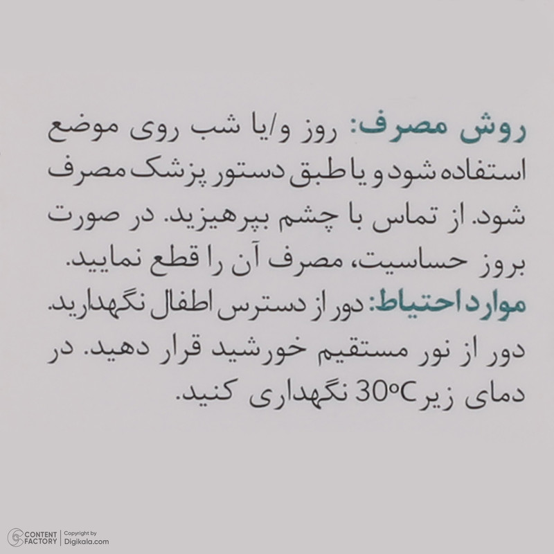 صبح و شب روی پوست تمیز استفاده شود. ازتماس با دورچشم خودداری شود.