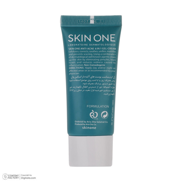 ژل کرم ضد جوش 6 در 1 SKIN ONE ساخت کشور ایران است و دارای فرمولاسیون فرانسوی میباشد.