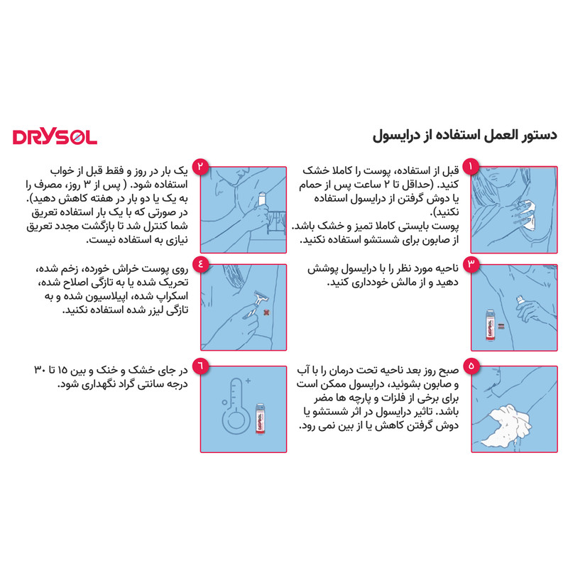 ضد تعریق مدل Extra Strength محصولی متفاوت از کمپانی موفق و بزرگ «درایسول» است که فرمولاسیونی خاص و ویژه دارد. این فرمولاسیون باعث شده که با یک بار استفاده تا هفت روز در ناحیه استفادهشده تعریق نداشته باشید. درایسول را شب قبل از خواب استفاده و صبح روز بعد میتوانید بشورید و تا یک هفته در محل مورد استفاده هیچ گونه عرق یا بویی بدی نخواهید داشت. با شستوشو واستحمام تاثیر درایسول از بین نرفته و درواقع غدد تعریق را به مدت یکهفته غیر فعال میکند. افرادی که هایپرهیدروسیس (تعریق بیش از حد) هستند با استفاده از ضد عرق درایسول کاملا تعریق بیش از حد این افراد قطع و کنترل میشود. هر یک از محصولات این سری ضد تعریق به صورت تخصصی برای بخشی از بدن طراحی شده است. مدل Extra Strength برای استفاده در نواحی زیر بغل، کف دست و کف پا عرضه شدهاست. با استفاده یک بار از این محصول در طول هفته از استفاده هر روزه از محصولات مشابه و شستوشوی دائم بدن بینیاز خواهید بود. برای استفاده از این محصول نیازی به غلتاندن آن روی پوست ندارید. با استفاده از یک سَری ابری که به همراه محصول ارائه میشود، میتوانید ماده درون محفظه را به صورت ضربهای روی قسمت مورد نظر بدن بزنید و تا مدتها از استفاده از خوشبو کننده یا ضد تعریقهایی که باعث زردی و لک روی البسه میشوند بینیاز باشید. درایسول باعث روشن شدن پوست مخصوصا در ناحیه زیر بغل و کشاله ران میشود.