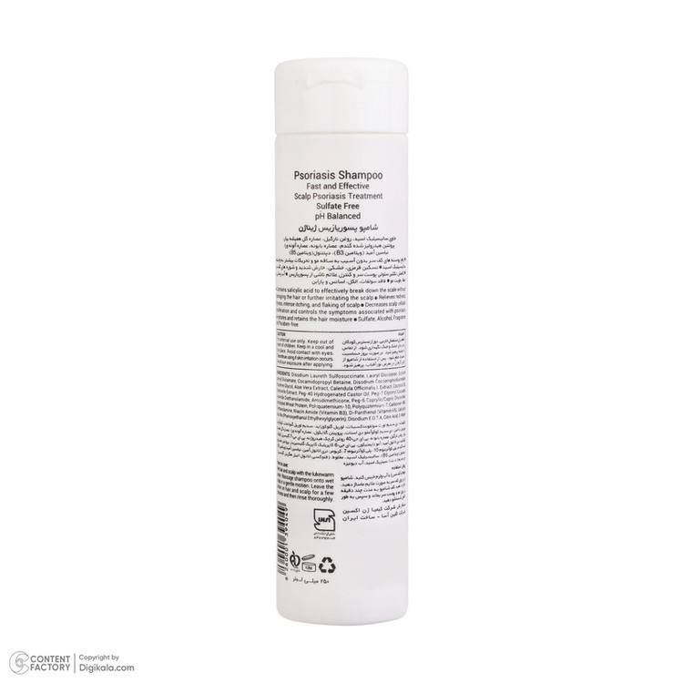 رفع پوستههای کف سر بدون آسیب به ساقه مو و تحریکات بیشتر، به واسطه سالیسیک اسید/ تسکین قرمزی، خشکی، خارش شدید و شورههای کف سر/ کاهش تکثیر سلولی پوست سر و کنترل علائم ناشی از پسوریازیس/ آبرسانی و حفظ رطوبت مو/ فاقد سولفات، الکل، اسانس و پارابن