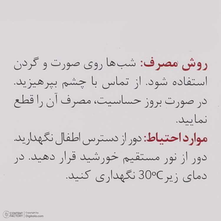 شب ها روی پوست تمیز صورت و گردن استفاده شود.