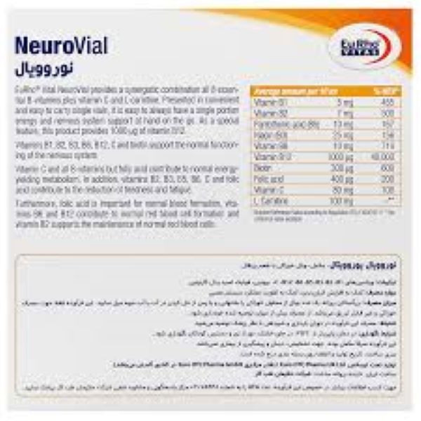 ویال خوراکی نوروویال یووریتال حاوی 1000 میکروگرم ویتامین B12 بههمراه سایر ویتامینهای B، ویتامین C و ال-کارنیتین است که به جبران کمبود این ریز مغذیها و بهبود عملکرد سیستم عصبی کمک میکند.