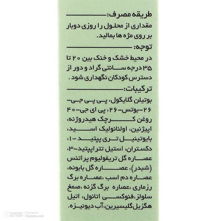 مقداری از محلول را روزی دوبار بر روی مژهها بمالید.