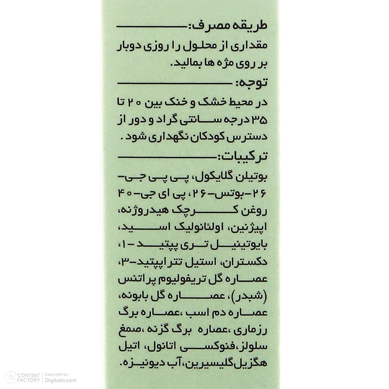 مقداری از محلول را روزی دوبار بر روی مژهها بمالید.