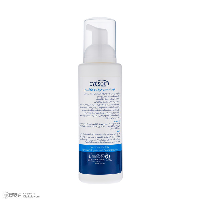 ابتدا دست ها را شسته سپس صورت را با کمی آب مرطوب کنید، مقدار کافی از فوم را کف دست ها ریخته و پلک ها و مژه ها را ماساژ داده و آبکشی کنید.
