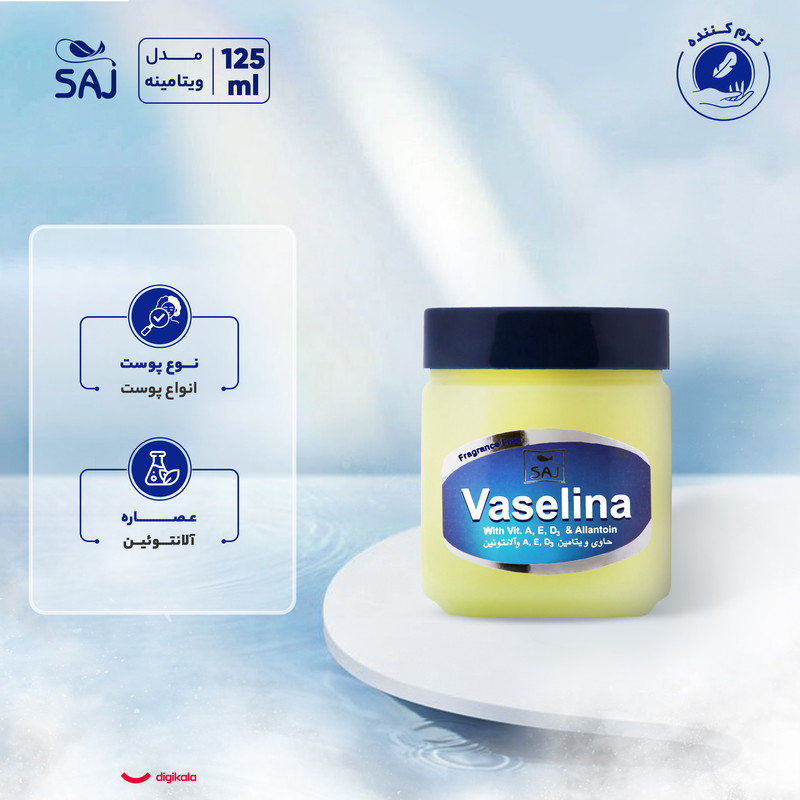 وازلین ساج مدل ویتامینه با حجم 125 میلیلیتر، یک محصول چندمنظوره و ایدهآل برای مراقبت از پوست دست و بدن شماست. این وازلین با فرمولاسیون غنی از آلانتوئین و ویتامینهای E، D3 و A، بهطور مؤثر پوست را نرم و مرطوب کرده و از خشکی آن جلوگیری میکند. طراحی شده برای استفاده روزانه در هر دو زمان روز و شب، این محصول مناسب برای تمامی انواع پوست، از جمله پوستهای حساس است و میتواند بهعنوان یک نرمکننده قوی برای تمام اعضای خانواده، چه بانوان و چه آقایان، مورد استفاده قرار گیرد. محفظه کاسهای آن، دسترسی آسان و استفاده بهینه از محصول را فراهم میآورد. وازلین ساج با تأییدیه سازمان غذا و دارو، اطمینان خاطر را در مورد ایمنی و کیفیت خود به شما میدهد. با انتخاب این وازلین، به پوست خود طراوت و نرمی ببخشید و از احساس لطافت و شادابی آن لذت ببرید. این محصول، بهترین راهحل برای حفاظت و مراقبت از پوست شما در برابر عوامل محیطی و خشکی است و به شما کمک میکند تا همیشه پوستی سالم و درخشان داشته باشید. با وازلین ساج، به سادگی به زیبایی و سلامت پوست خود اهمیت دهید.