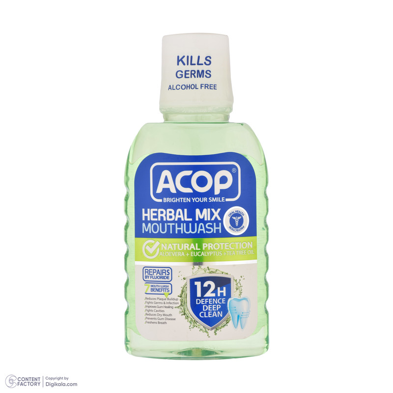 دهان شویه گیاهی اکوپ حاوی عصاره گیا آلوئه را و اکالیپتوس بوده و همچنین دارای روغن درخت چای میباشد. این محصول ضد میکروب و برای جلوگیری از عفونت دهان ( آفت دهان) بسیار موثر میباشد.