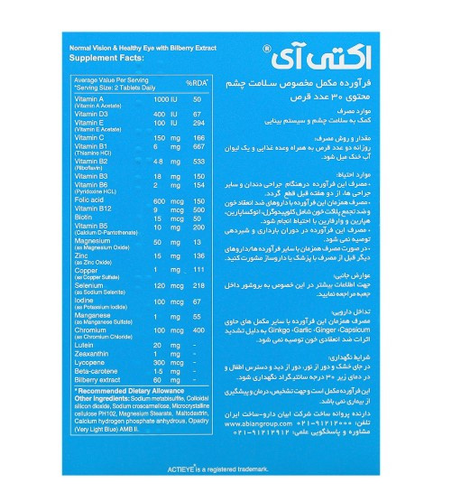 قرص اکتی آی مخصوص سلامت چشم 30 عددی ابیان دارو
