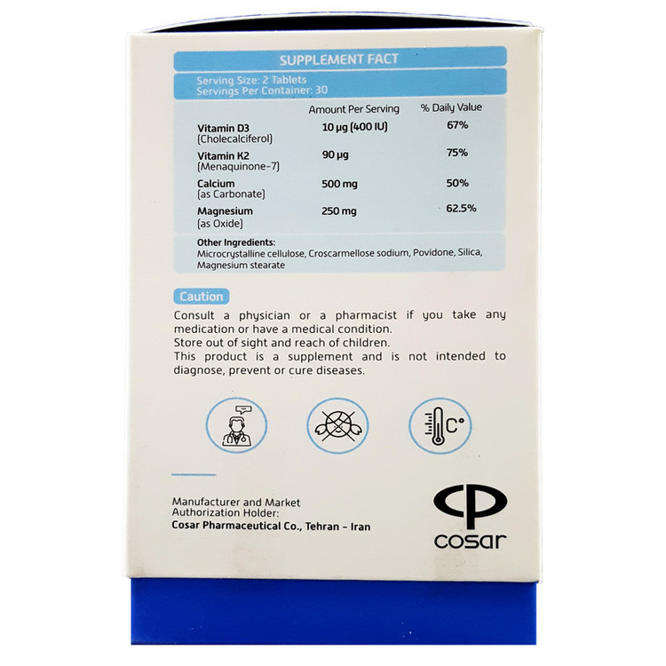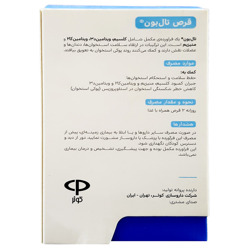 روش مصرف: روزانه 2 قرص را همراه با غذا میل کنید.