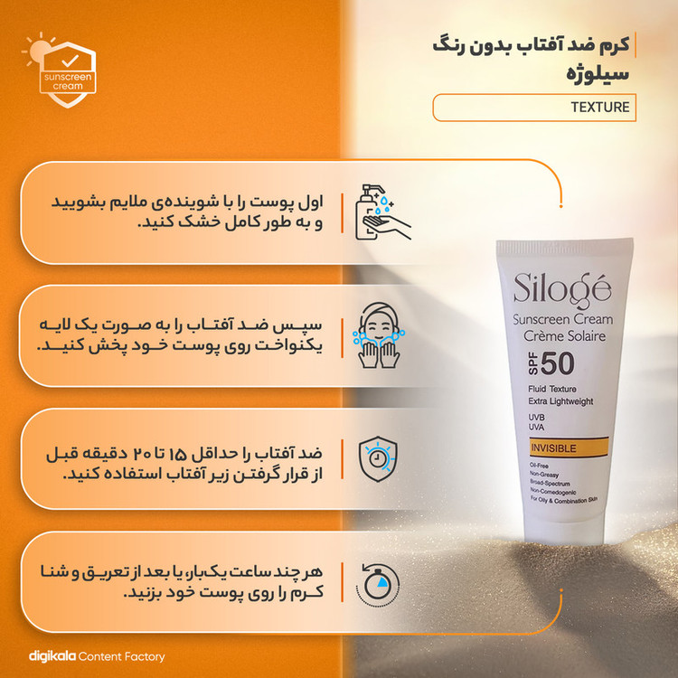کرم ضد آفتاب سیلوژه با SPF 50، به طور خاص برای محافظت از پوستهای چرب و مستعد جوش طراحی شده است. این کرم با ارائه محافظتی موثر در برابر اشعههای مضر خورشید، به جلوگیری از آسیبهای ناشی از نور خورشید مانند لکهای پوستی، پیری زودرس و خشکی کمک میکند. یکی از ویژگیهای کلیدی این محصول، فرمولاسیون بدون رنگ آن است که برای افرادی که نمیخواهند تغییری در رنگ طبیعی پوست خود ایجاد کنند، ایدهآل است. علاوه بر محافظت، کرم سیلوژه دارای خاصیت روشنکنندگی نیز هست. این ویژگی به تدریج به بهبود رنگ پوست و کاهش لکههای تیره کمک میکند. ترکیبات فعال در این کرم به طور ملایم بر روی پوست عمل کرده و به مرور زمان باعث روشنتر شدن و یکدست شدن رنگ پوست میشوند. فرمولاسیون غیر کومدونزای این کرم از دیگر نقاط قوت آن است. کرم سیلوژه به خوبی بر روی پوست جذب میشود، بدون اینکه منافذ پوست را مسدود کند یا احساس سنگینی ایجاد کند. این خاصیت از ایجاد جوشهای جدید جلوگیری کرده و در عین حال به تنظیم چربی پوست کمک میکند.