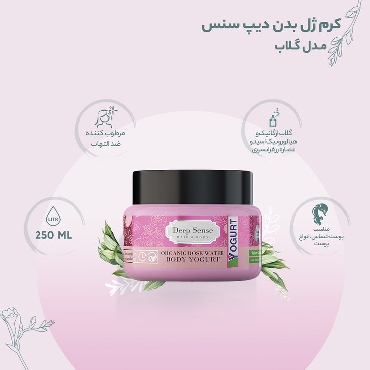 ماست بدن گلاب دیپ سنس مخصوص انواع پوست به ویژه پوست های حساس است که ضمن تغذیه و آبرسانی عمیق، سبب رفع التهاب و خشکی پوست بدنتان نیز می گردد. این ژل کرم آبرسان بدن حاوی گلاب ارگانیک، هیالورونیک اسید و عصاره رز فرانسوی، در برابر عوامل نامساعد بیرونی از پوست شما محافظت کرده، آن را ترمیم کرده و ظاهری ابریشمی به آن می دهد. ماست بدن دیپ سنس با قدرت جذب بالا و مناسب برای همه قسمت های بدنتان به خصوص نواحی بسیار خشک مانند آرنج ها، زانو ها، دست ها و پاهایتان است.