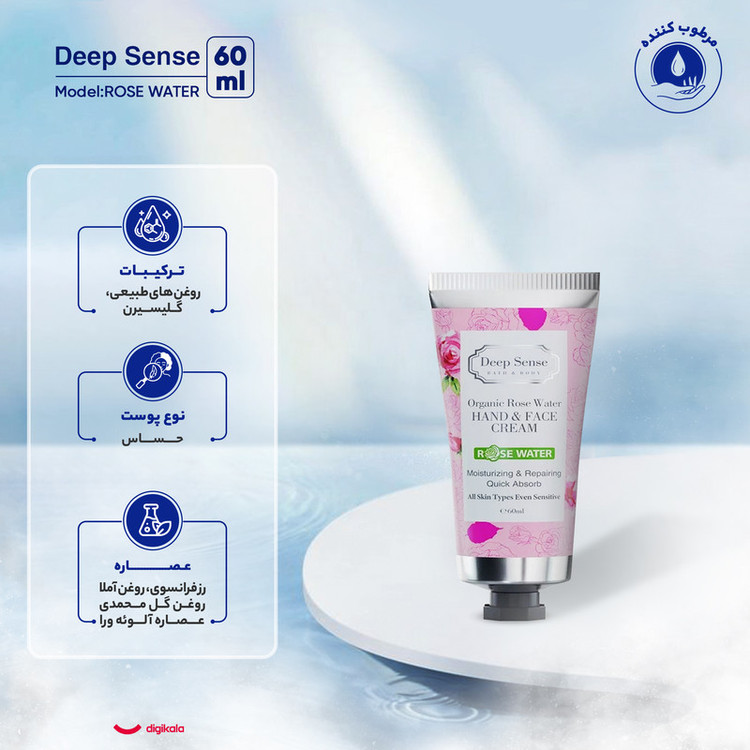 کرم مرطوبکننده دیپ سنس مدل ROSE WATER حجم 60 میلیلیتر