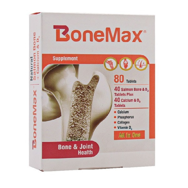 قرص بن مکس فارمد سلامت سینا تهیه شده از پودر استخوان ماهی سالمون همراه با ویتامین D است. پودر استخوان به عنوان بهترین منبع قابل دریافت کلسیم، فسفر و کلاژن در نظر گرفته میشود. بن مکس حاوی کلسیم و فسفر در نسبت ایده آل 2 به 1 و به فرم هیدروکسی آپاتیت است. استخوان ماهی سالمون به طور طبیعی دارای مقادیر بالای کلسیم، فسفر و کلاژن است و مطالعات نشان میدهند که این ماده قابلیت ویژهای در کمک به سلامت استخوان و ساخته شدن استخوان جدید دارد. در مکمل بن مکس 2 عدد بلیستر نارنجی رنگ 20 عددی قرص روکش دار پودر استخوان سالمون + ویتامین D3 و 2 عدد بلیستر طلایی رنگ 20 عددی قرص روکش دار کلسیم + ویتامین D3 موجود است.