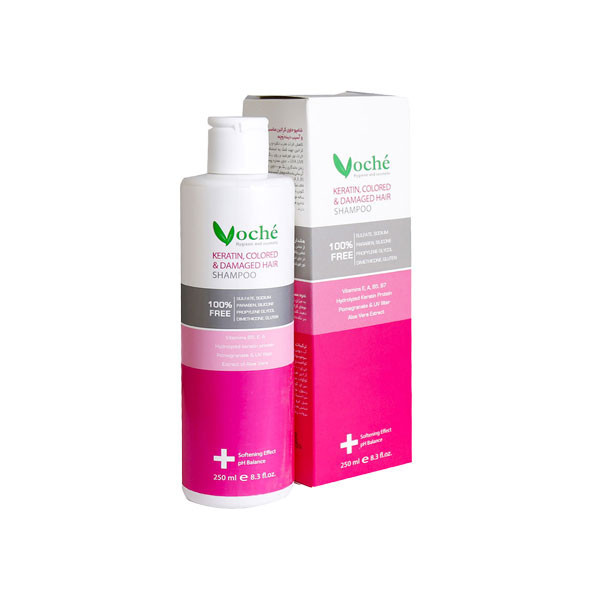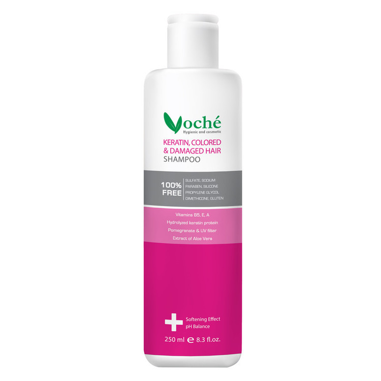 شامپو مناسب موهای کراتین شده، آسیب دیده و رنگ شده دارای فرمولاسیون اختصاصی جهت حفظ رنگ و کاهش اثرات مخرب دکلره و رنگ مو می باشد. این شامپو به کمک کراتین موجود در آن مو را آبرسانی کرده و ساقه مو را بازسازی میکند. این شامپو به کمک ویتامین های بیوتینA ،E و B5 به کاهش ریزش مو و تقویت فولیکولها کمک میکند. این شامپو به کمک فیلتر UV و عصاره انار اثرات مضر نور خورشید را کاهش داده و به تثبیت رنگ مو کمک میکند. این شامپو فاقد مواد مضر سولفات، ، پارابن ، سیلیکون، گلوتن، پروپیلن گلیکول، دایمتیکون و نمک می باشد. به میزان کافی از شامپو را بر روی کف سر و ساقه موهای کراتینه و رنگ شده بمالید و پس از چند دقیقه با نوک انگشتان ماساژ دهید و سپس آبکشی نمایید. در این شامپو برای حفظ رطوبت ساقه مو و پوست سر سولفات حذف شده است. شامپو های فاقد سولفات دارای کف کمتر و شویندگی بیشتر می باشند.
