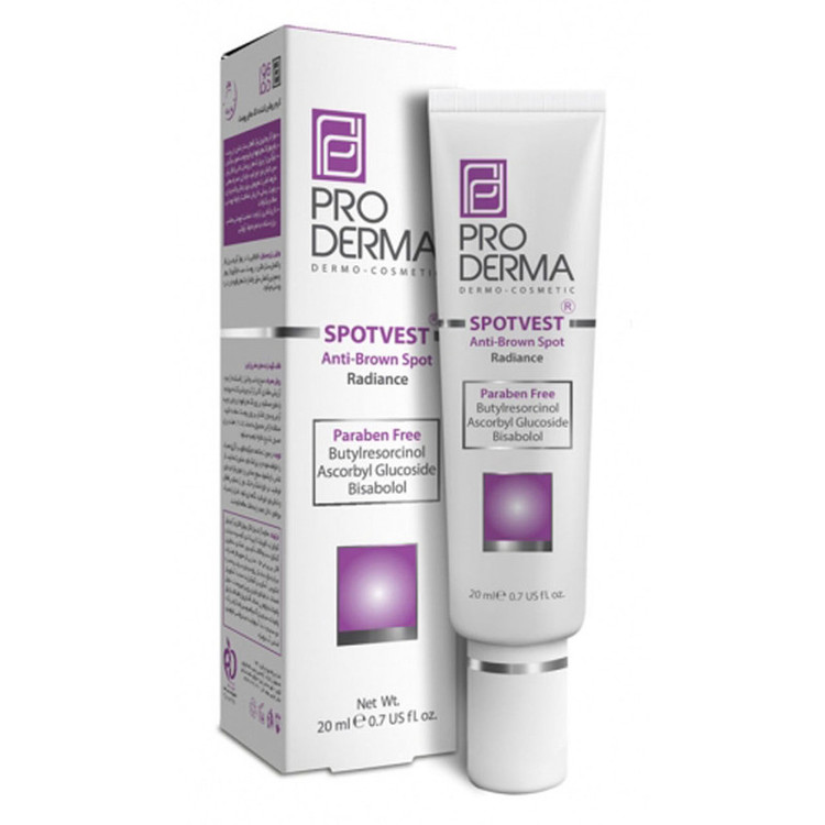 شرکت آراشیمی پارس با هدف تولید محصولات بهداشتی و آرایشی و به منظور ارتقا و بهبود سلامت پوست و مو و پاسخگویی به نیازهای بهداشتی اقشار مختلف جامعه راه اندازی شده است. هم اکنون محصولات شرکت آراشیمی پارس با نام تجاری پرودرما که شامل انواع کرم های ضدآفتاب، مرطوب کننده، محصولات ضدجوش، انواع پن های درماتولوژیک، محصولات لایه بردار، کرم های ضدچروک، سفت کننده پوست و غیره میباشد با استفاده از مواد اولیه این شرکت فرموله و تولید میشود و درج لوگوی Formulated with usage of Silab actives بر روی بسته بندی این محصولات نشان دهنده مجوز همکاری با این شرکت معتبر فرانسوی است.این کرم مناسب برای انواع پوست دارای ویتامین C گلوکوزاید ( فرم پایدار ویتامین C )برای کاهش سایز و اندازه لک های قهوه ای و تیره پوستی و رفع موثر لک های پوست صورت و گردن با رطوبت رسانی، افزایش شفافیت و ایجاد پوستی صاف و یکنواخت میباشد. دارای کمترین اثر ایجاد حساسیت پوستی ، مناسب برای استفاده به همراه مواد آرایشی است که باعث جلوگیری از بروز لک های پوستی ناشی از افزایش سن ، تابش نور خورشید ، بارداری ، مصرف بعضی داروها، تغییرات هورمونی ، لیزردرمانی و لایه برداری است.حاوی بوتیل رزورسینول با توانایی بالا در مهار آنزیم تیروزیناز و کاهش سنتزملائین در پوست سبب جلوگیری از بروز و همچنین کاهش سایز و اندازه لک های قهوه ای و تیره پوستی میشود .صبح و شب و قبل از استفاده از مواد آرایشی، مقداری کافی از کرم روشن کننده پرودرما را بطور مستقیم بر روی لک های قهوه ای و تیره و به آرامی و بدون فشار برروی پوست استفاده کنید. استفاده از این محصول به مدت 8 تا 12 هفته برای حصول نتایج دلخواه توصیه میشود.