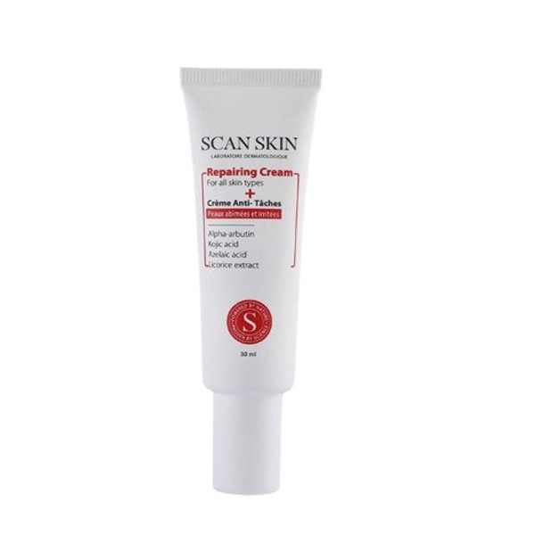 کرم ترمیم کننده اسکن اسکین Scan Skin Repairing Cream یک محصول بازسازی کننده پوست و در لاین repairing محصولات اسکن اسکین قرار دارد و مناسب پوست های آسیب دیده است. این کرم حاوی دو ماده موثره اصلی سوکرالفیت 1٪ و استیل دی پپتید 1 ستیل استر است. این ترکیبات در افزایش سرعت ترمیم پوست های آسیب دیده و حساس، نقش موثر دارد. قرمزی، التهاب و پوست را کاهش می دهد. محرک متابولیسم سلولی است و اثر آنتی باکتریال دارد. کرم ترمیم کننده اسکن اسکین همچنین قابلیت رفع چروک های سطحی پوست را نیز دارد. این محصول با ایجاد پانسمان نامرئی، التهاب و خارش پوست را کاهش داده و باعث افزایش سرعت ترمیم پوست می شود. مانند سایر محصولات اسکن اسکین، این محصول نیز از ترکیبات گیاهی بهره می برد. از جمله این ترکیبات می توان به عصاره آویشن، روغن کالندولا و روغن جوجوبا است. این ترکیبات باعث ضد عفونی شدن موضع آسیب دیده می شوند. همچنین سایر ترکیبات آنتی اسکار مانند زینک اکساید نیز باعث افزایش سرعت ترمیم پوست می شود.