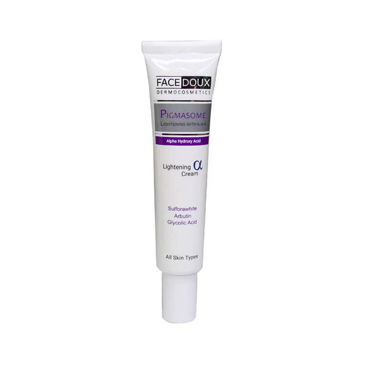 کرم ضد لک و روشن کننده صورت فیس دوکس یک ضد لک غیر هیدروکینونی حاوی آنتی اکسیدان، ویتامین و مواد ضد پیری و دیگر مواد موثره طبیعی است که میتواند موجب رفع تیرگیها و لکهای پوست ناشی از عوامل مختلف شود. پیگمازوم آلفا یک کرم ضد لک و روشن کننده، غیر قابل اکسید، حاوی سولفوراوایت، آلفا آربوتین و گلایکولیک اسید (آلفا هیدروکسی اسید) است. این محصول یک عامل روشن کننده پوست است که سبب اصلاح مشکلات رنگدانه ای پوست، لکهای ناخواسته و لکهای ناشی از پیرپوستی میشود. این ترکیب حاوی ترکیبی از عوامل طبیعی جایگزین هیدروکینون است که سبب ممانعت از بروز اختلافات رنگدانه ای پوست در پوستهای جوان میشود.