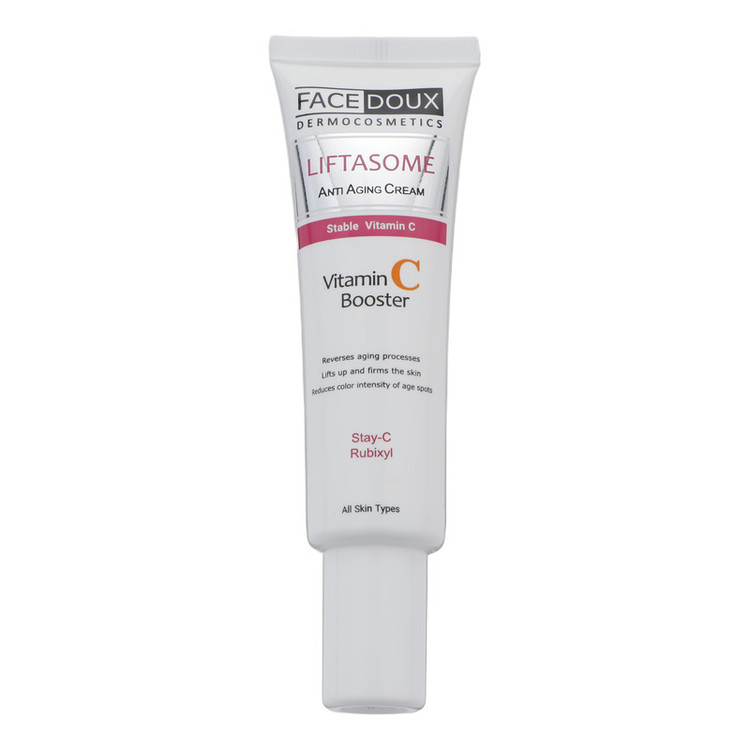 کرم ضد چروک فیس دوکس مدل liftasome c booster سفتی پوست را تا حد زیادی بهبود داده و میزان کلاژن و الاستین را افزایش می دهد و همچنین تعداد سلولهای آسیب دیده از آفتاب را کاهش و موجب بازگردانی اسیب سلولهای پوست ناشی از سن می شود . این کرم راهی برای کاهش تجمعات رنگدانه ای صورت می باشد.این کرم ضد چروکی قوی و ضد لکی مناسب جهت لیفت صورت و گردن می باشد و موجب آبرسانی و کاهش عمق چروک است و بواسطه دارا بودن پایدارترین فرم ویتامین سی به کاررفته در آن موثرترین آنتی اکسیدان بخصوص در برابر آفتاب است. ویتامین سی موجود در کرم ویتامین سی فیس دوکس به عنوان یکی از موثرترین ویتامین سی های موجود دارای قدرت مهاری در سنتز ملانین است. این ویتامین دارای اثرات روشن کنندگی و ضد لک بخصوص در لک ناشی از آکنه ، افزایش سن و پیر پوستی است. این کرم ویتامین سی دارای اثرات مثبتی در لکهای تیره تر و کک و مک است. در مطالعه ای دیده شده است بکار گیری این ماده به میزان بیش از 40 درصد از میزان ساخت ملانین بعد از تابش اشعه UVA کاسته است و به مراتب از انواع دیگر ویتامین سی نیز موثرتر بوده است.این ماده موجود در کرم ویتامین سی فیس دوکس موجب تحریک ساخت کلاژن نوع چهار می گردد که بسیار در سلامت پوست فاکتوری اساسی است عصاره .زعفرانبرفی موجود دراین سمبل جوانی و جوان سازی در جهان بوده و دارای خاصیت برعکس نمودن روند پیر پوستی با تقویت ارتباط بین سلولی در پوست است. این ماده برنده جایزه برترین ماده ضد پیر پوستی جهان در سال 2013 است.زعفران برفی می تواند در ظرف مدت دو هفته موجب افزایش 115 درصدی تولید کلاژن و 25 درصدی الاستین شده و تنها پس از چهارده روز به میزان 11 درصد سفتی و خاصیت کشسانی پوست افزایش می یابد